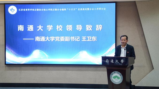 王卫东代表南通大学及南通大学杏林学院对与会嘉宾表示热烈欢迎,他指出,新时期独立学院后勤服务正面临需求升级与模式变革的双重机遇,期望通过本次研讨实现经验共享、智慧聚合,为“十五五”规划注入新思路,为江苏独立学院后勤事业发展凝聚合力。