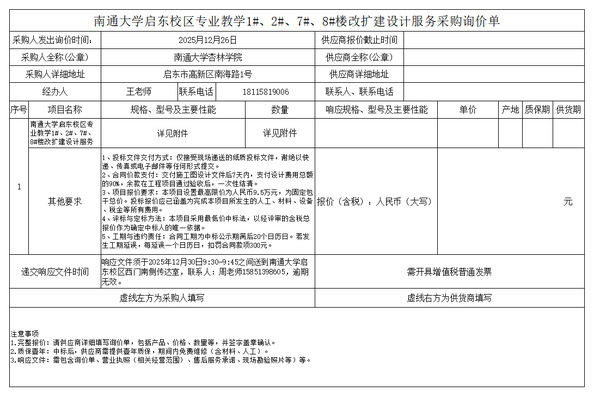 南通大学启东校区专业教学1#、2#、7#、8#楼改扩建设计服务采购询价